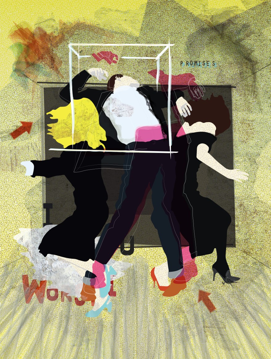 This collage takes the iconic character poses from Longo’s “Man in Cities” project, and places them in the expressive and chaotic world of Bacon. All the expressive brush work and boxes hint at themes of isolation and anxiousness. Creating this piece, I imagined myself as the central image trying to make sense of the world around me. I like the juxtaposition of a dirty maddening background against the clean but anguished characters of Longo. It suggests that even when you think you’ve got the world figured out, chaos is all around you.